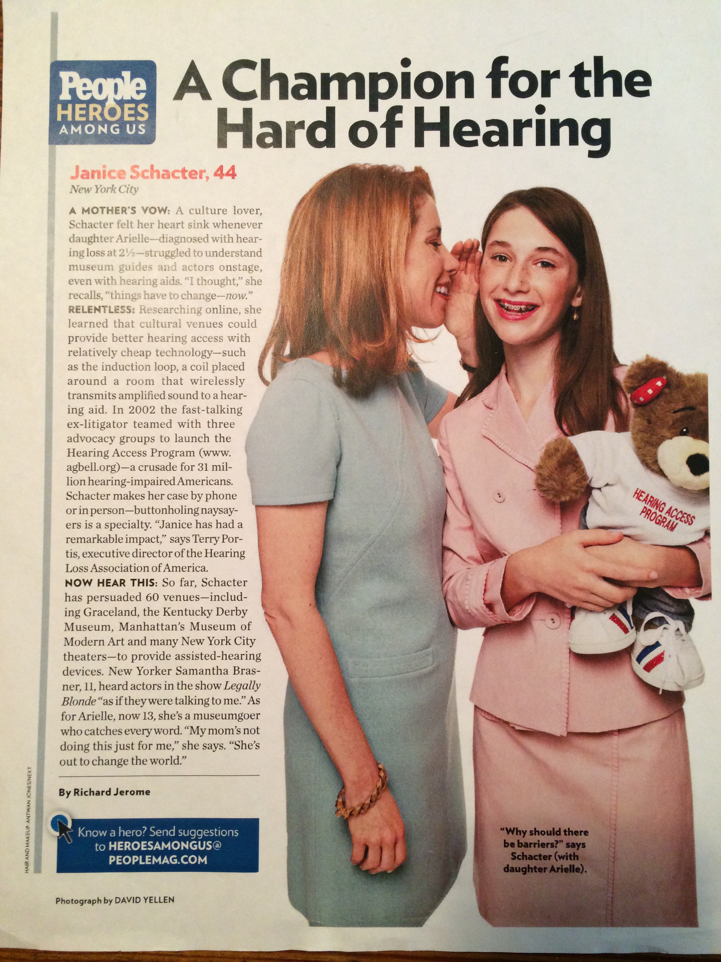A culture lover, Janice felt her heart sink whenever her daughter – diagnosed with hearing loss at 2 ½ – struggled to understand museum guides and actors on stage, even with hearing aids. Not one to wait, Janice plunged into the research and learned that cultural venues could provide better hearing access with relatively standard technology, such as the induction loop, a coil placed around a room that wirelessly transmits amplified sound to a hearing aid or cochlear implant.